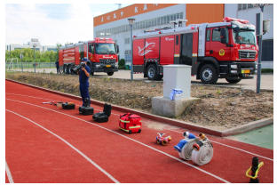 在消防教官的引导下,师生们有序参观消防车及各类消防器具。教官结合实物,逐一讲解每种设备的功能、使用场景与操作要点,深入浅出的讲解让大家对消防设备有了更直观深入的认识。随后,部分新生在消防员的手把手指导下,亲自体验了消防高压水枪开启后的威力。强劲水柱喷涌而出的瞬间,同学们真切体会到消防救援工作的艰辛与伟大。