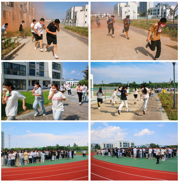 宿舍楼外消防警报骤然响起,烟雾弹释放的滚滚浓烟迅速弥漫,模拟火情疏散演练正式启动。面对警报与浓烟的双重信号,同学们反应迅速,立即按照预设疏散路线,以捂鼻、弯腰低姿的正确姿势,有序向楼外安全区域撤离。疏散途中,大家相互提醒、彼此协助,充分展现出良好的团队协作精神与应急反应能力。短短几分钟内,全体师生便安全集结至指定区域,各班班主任第一时间清点人数并上报,整个过程高效流畅,充分彰显了师生扎实的应急训练成果。
