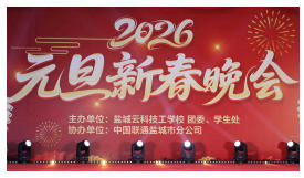 冬意渐浓,岁序更新,盐城云科技工学校的校园内处处洋溢着辞旧迎新的喜悦氛围。12月27日晚,由学校团委和学生处联合主办、中国联通盐城分公司协办的“辞旧迎新启华章 凝心聚力向未来”2026年元旦新春晚会,在我校盛大启幕,全校师生欢聚一堂,共庆佳节。
